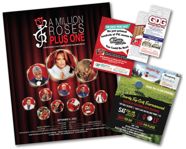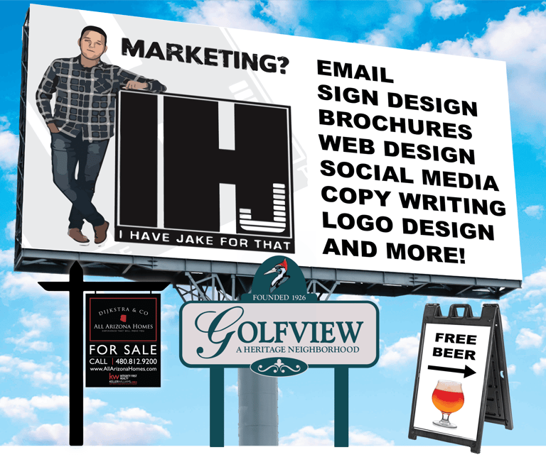 Whether you are promoting a theatrical premier, golf tourney, your painting business or daily specials - you need professionally crafted works of art! Get your message across and look good doing it. Any size. (Yes we can create a print ready billboard.)