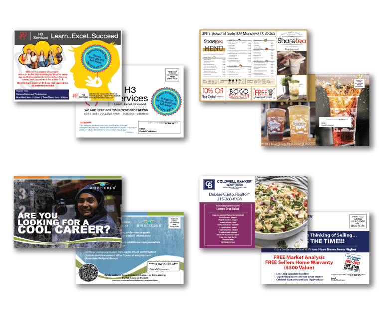 EDDM (Every Door Direct Mail) allows businesses to reach a targeted audience through cost effective, direct mail campaigns. No mailing lists or permits are required, reach a large number of potential customers in a specific area or neighborhood. Customize your marketing materials, including postcards, flyers, and brochures, to showcase your products and services and stand out from the competition.
